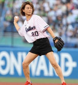こちらは、氷川きよしさんが神宮球場で始球式に登場した際の写真です。