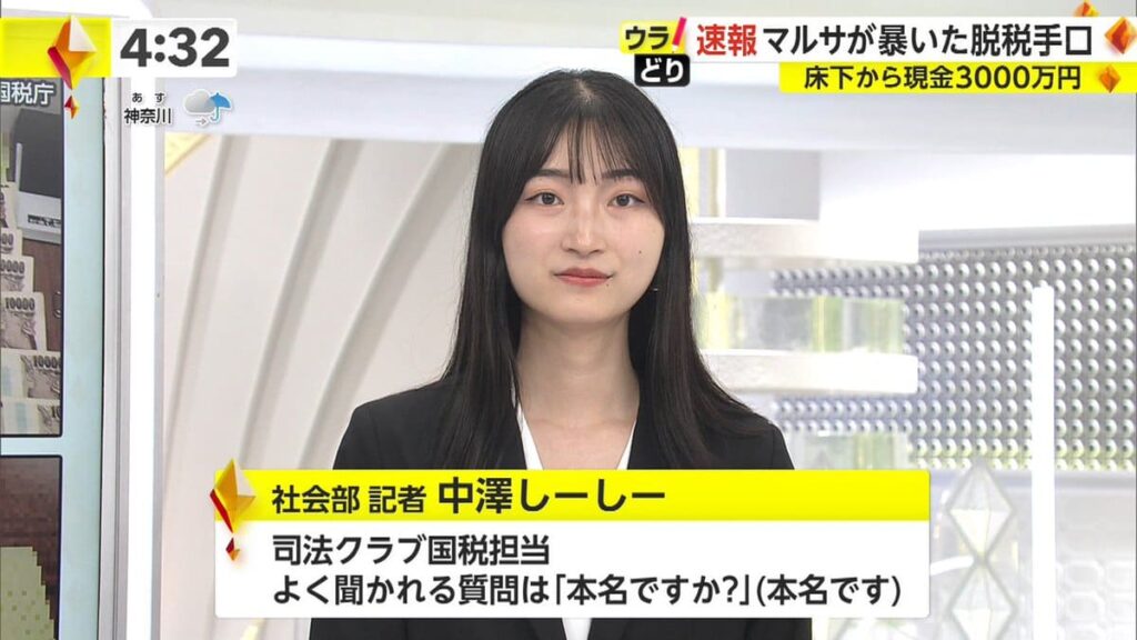 中澤しーしーさんは、日本ではかなり珍しい「しーしー」という本名を持ち、早稲田大学法学部を卒業後、2020年にフジテレビに入社した社会部記者です。